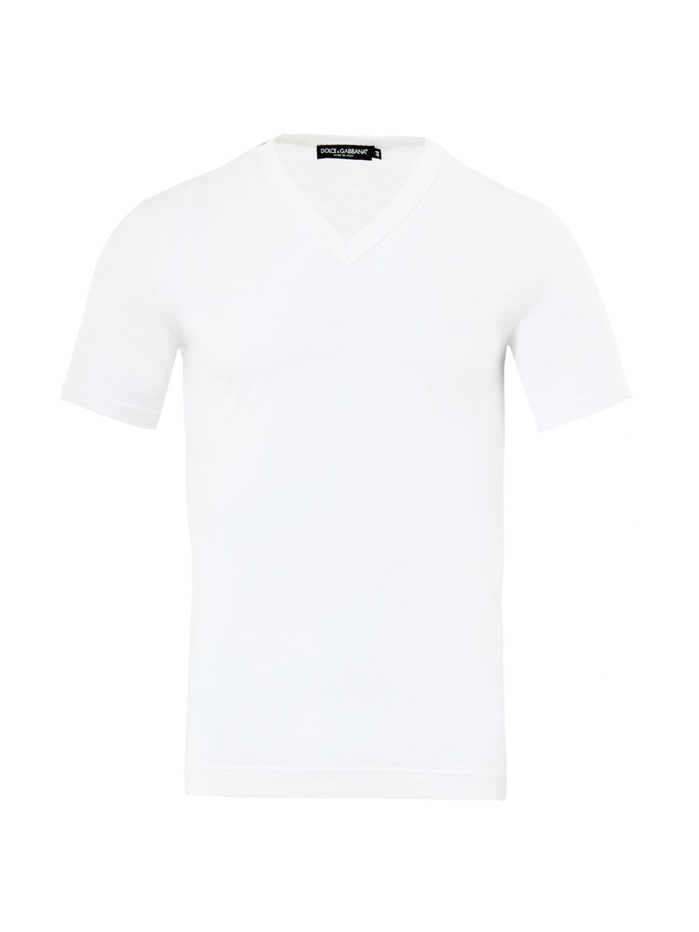 T-shirt Scollo a V in Cotone Bianco Dolce & Gabbana. Linea basica, scollo a V, maniche corte