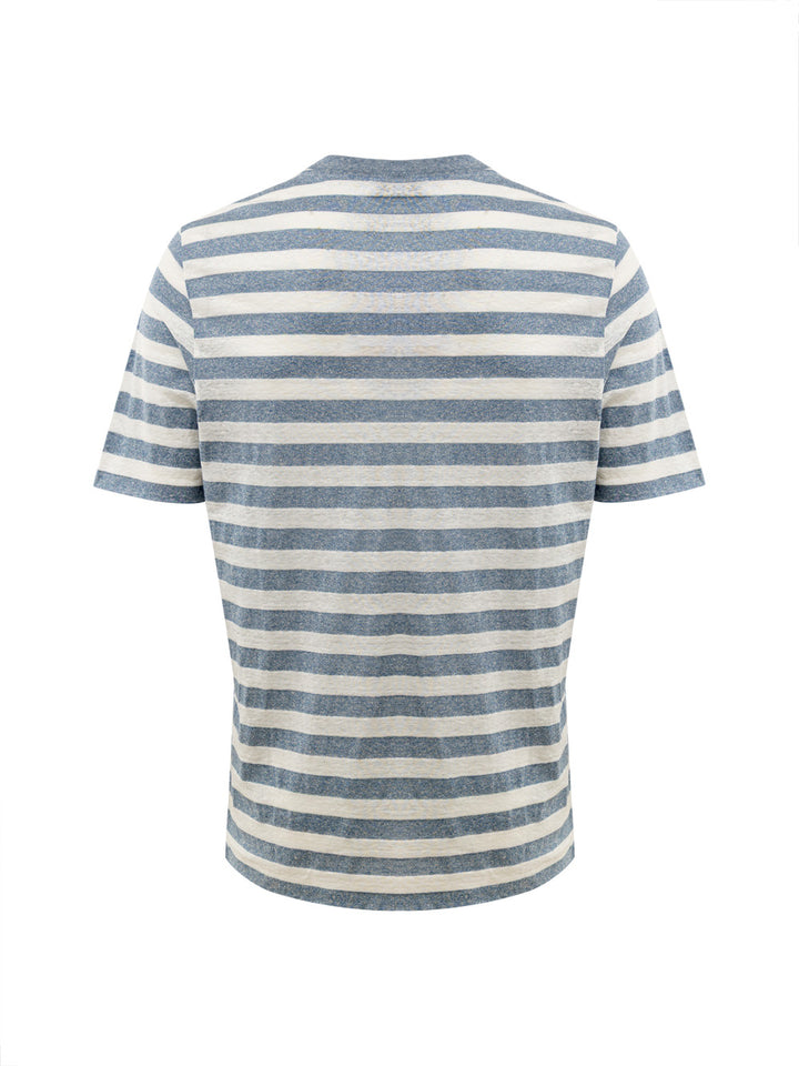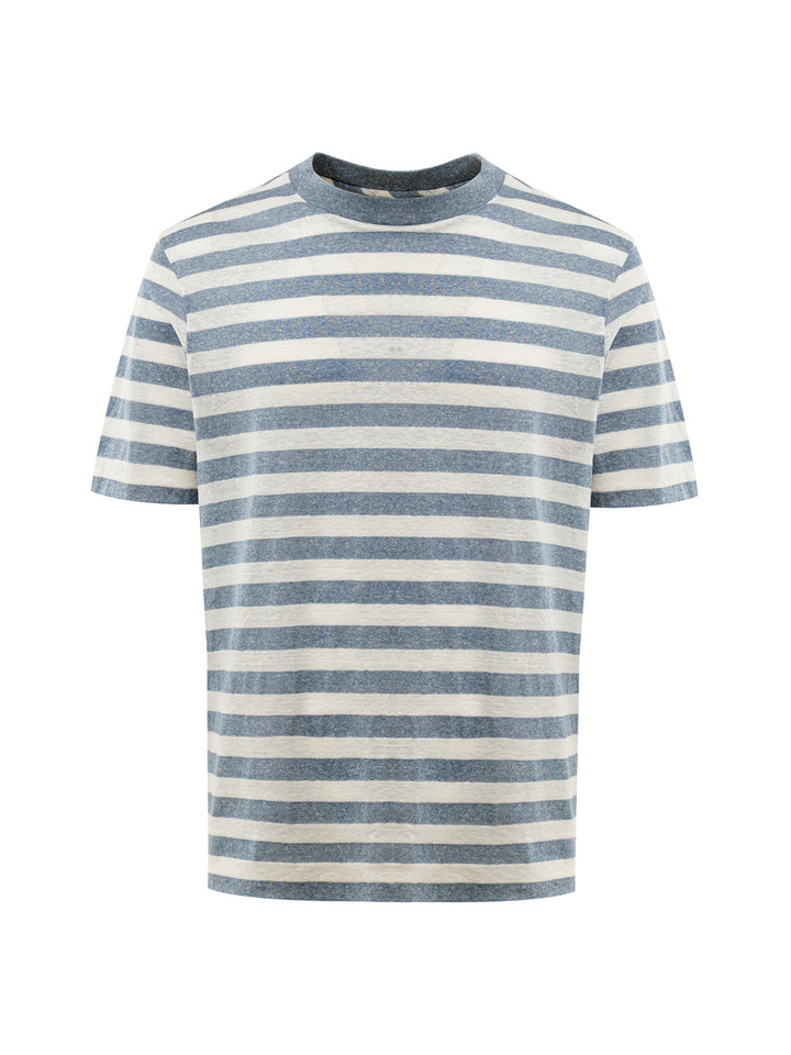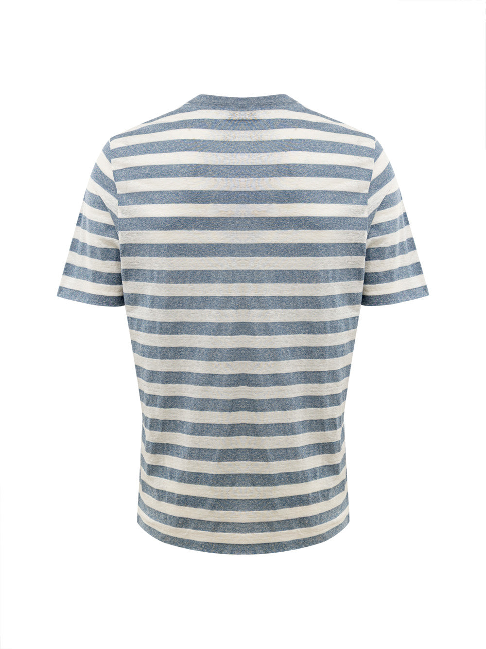 Gestreiftes T-Shirt aus geflammter Baumwolle von Gran Sasso. Weiße und graue Streifen, Rundhalsausschnitt, kurze Ärmel, normale Passform.