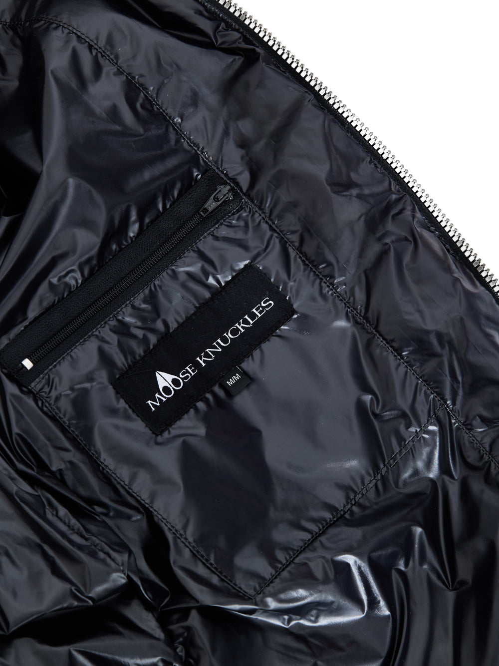 Giubbino Imbottito Leggero Grigio Moose Knuckles. Allacciatura frontale con zip, due tasche laterali chiuse con zip, due superiori applicate chiuse con patta, imbottitura leggera, taschino interno. Parte superiore a contrasto con tessuto tecnico lucido, sulla manica piccolo patch in pelle con logo applicato. Modello cropped.
