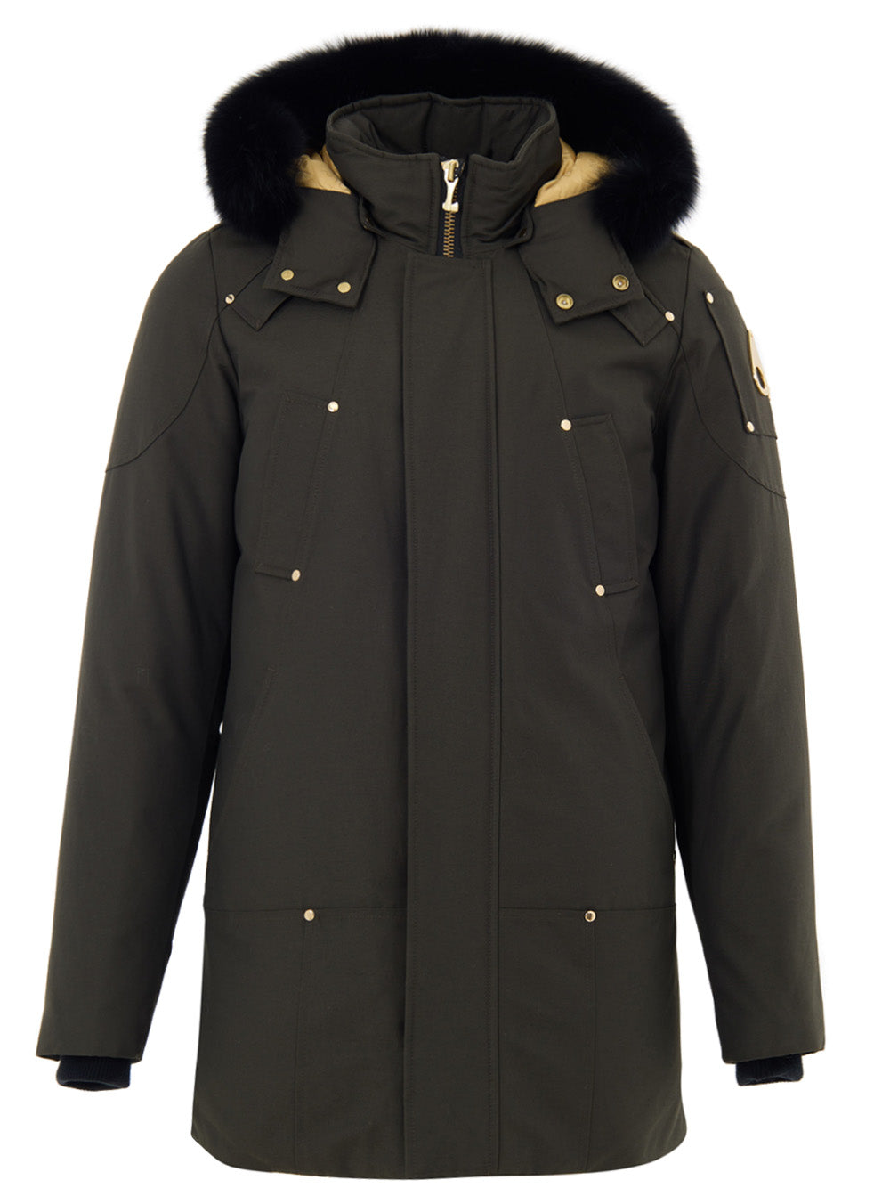 Parka Nero con Cappuccio e Zip Gold Moose Knuckles