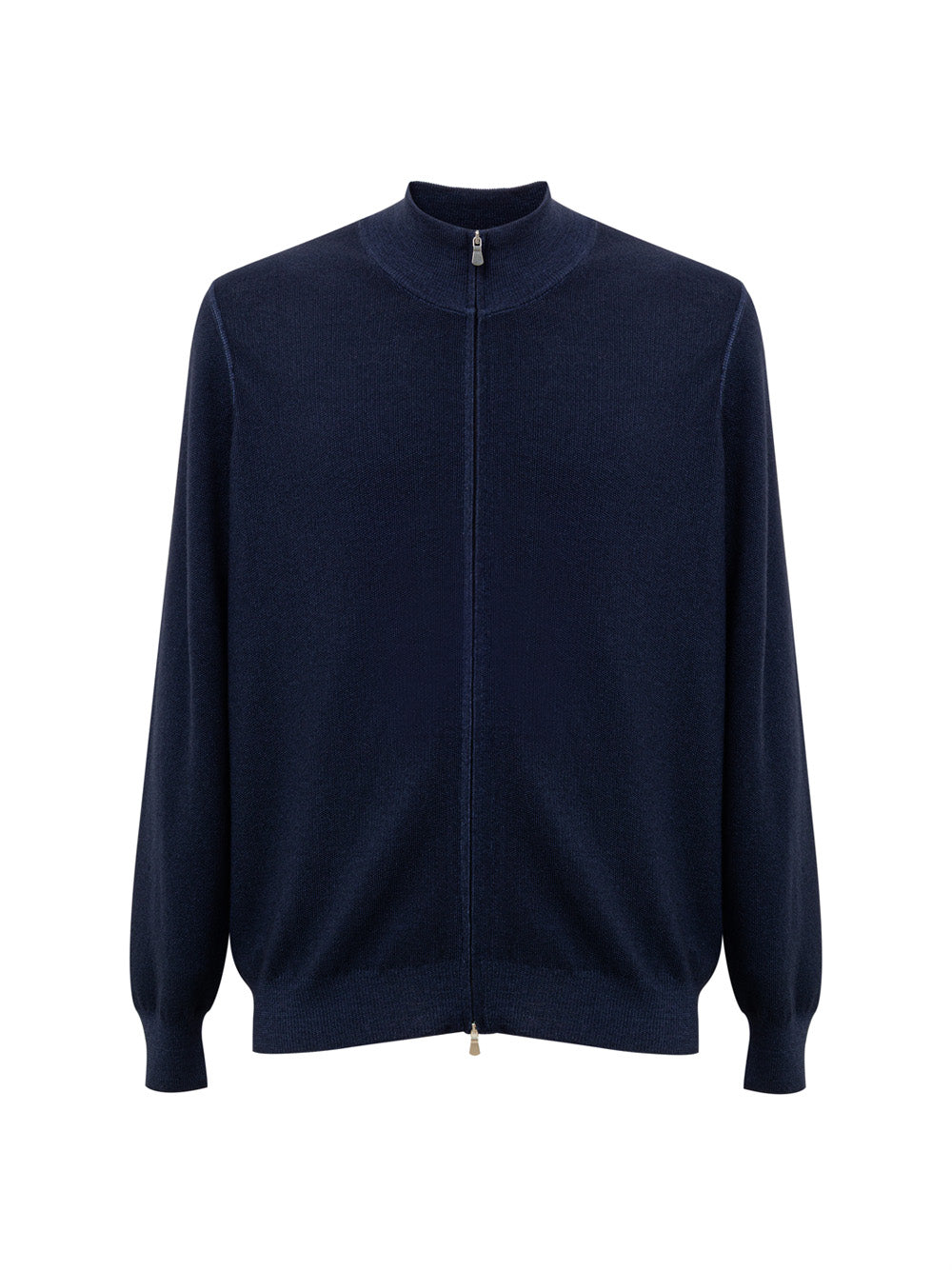 Maglione con Zip Grigio in Lana ed Eco Fur Gran Sasso