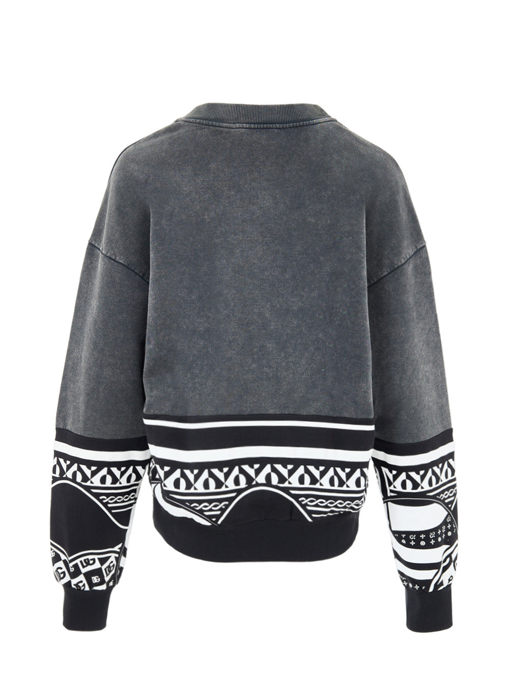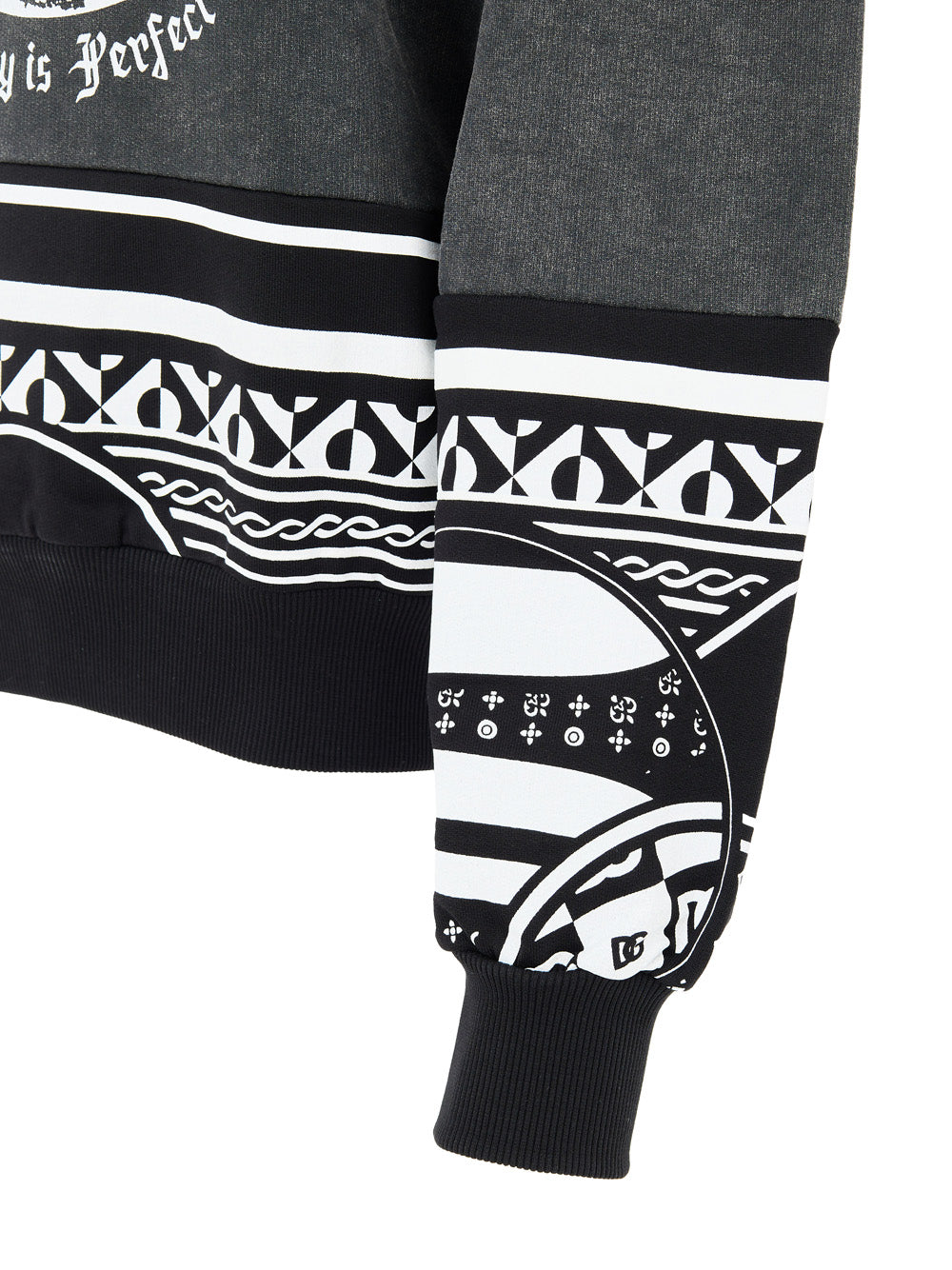 Felpa Nera Délavé con Stampa 'Nobody is Perfect' Dolce & Gabbana. Maniche lunghe, girocollo, stampa frontale DG Nobody is Perfect, sulla parte in basso e sulle maniche, dettaglio in cotone nero con stampa a contrasto