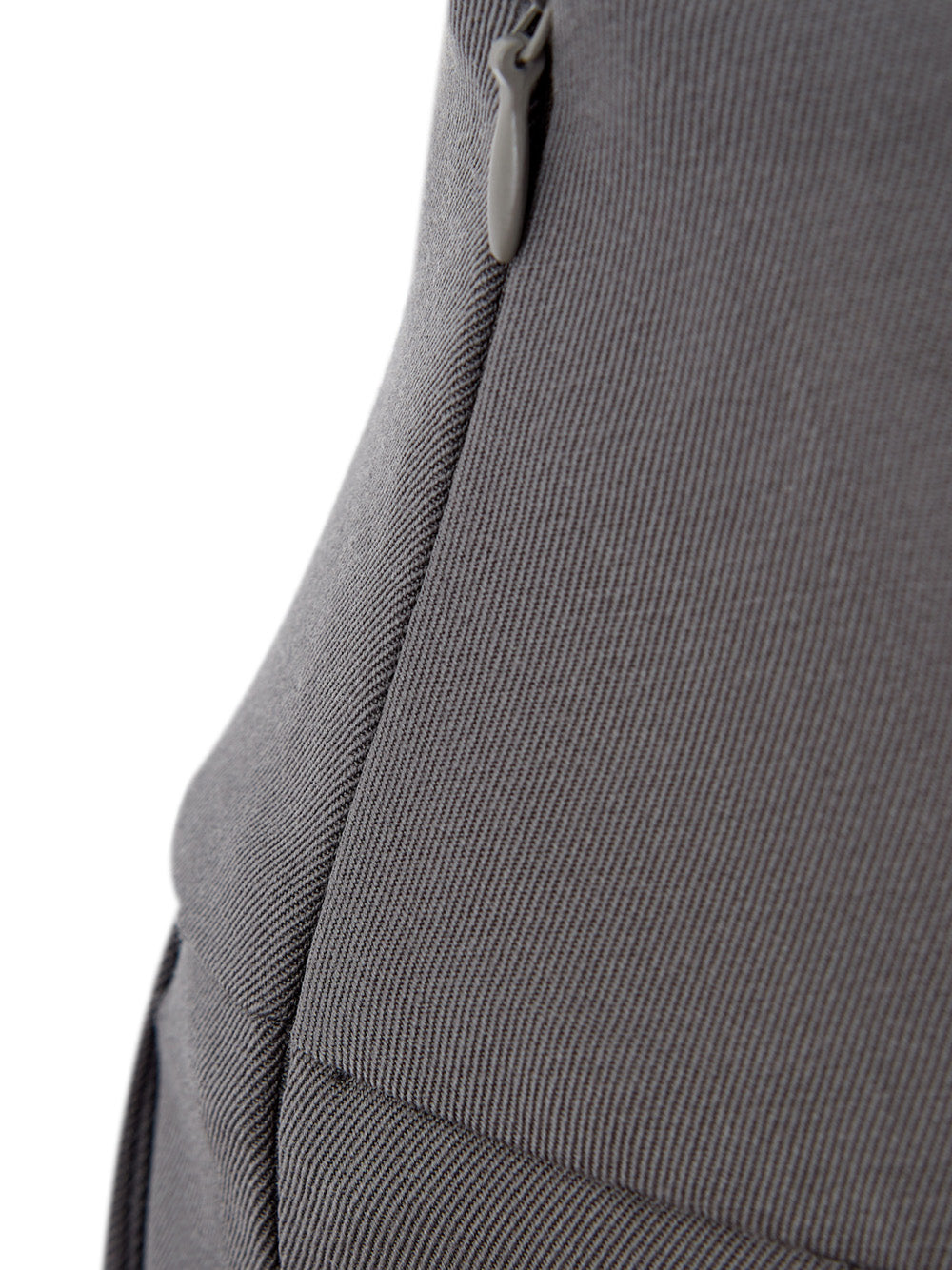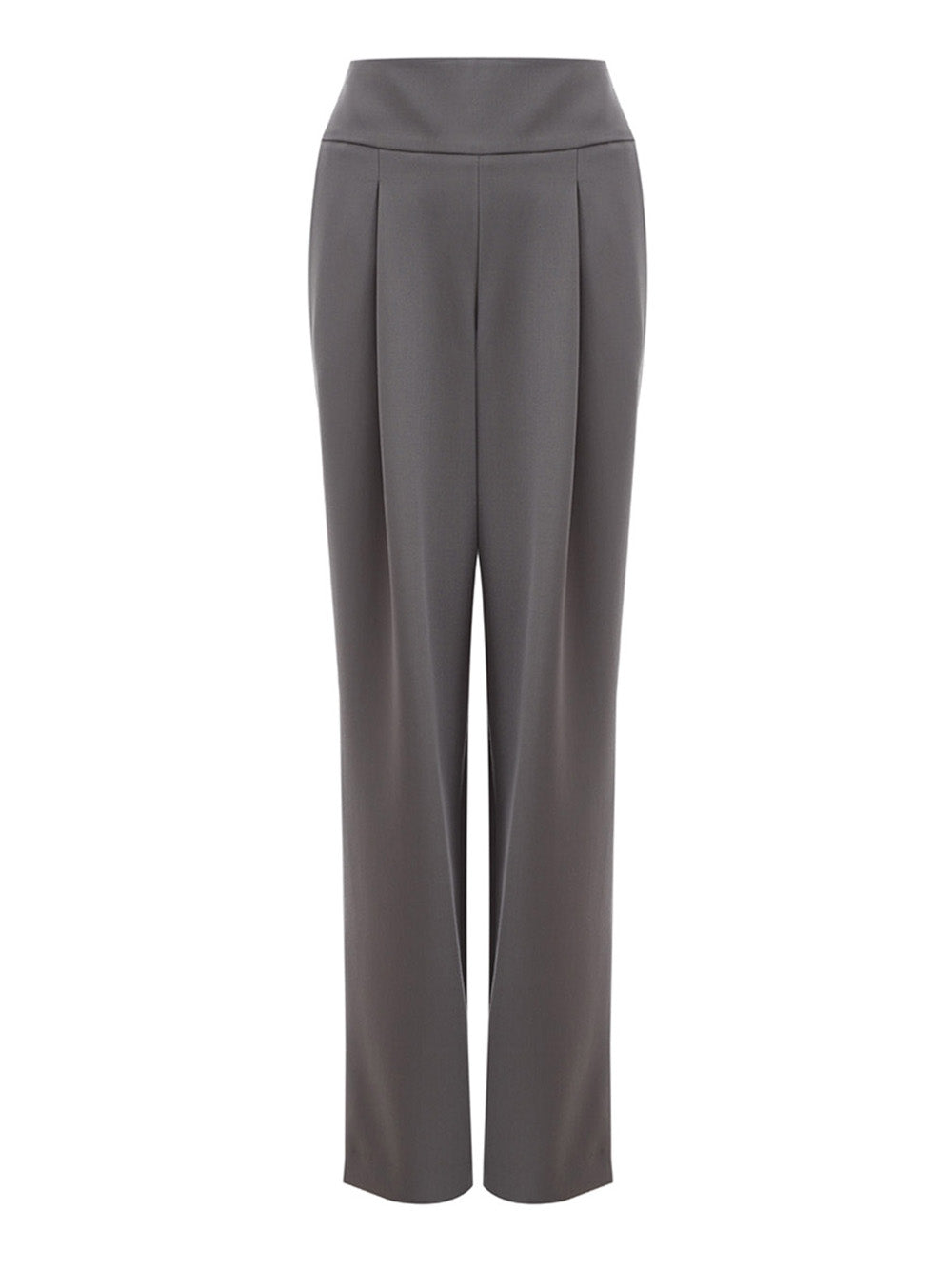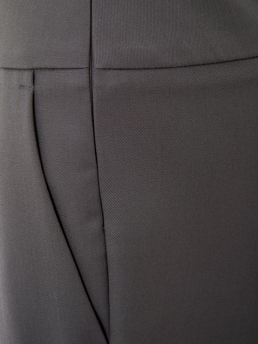 Palais à taille haute palais en laine grise, avec des pinces, deux poches latérales, sur la robe de jambe, fond 19 cm Composition: 100% laine interne: 23FE221