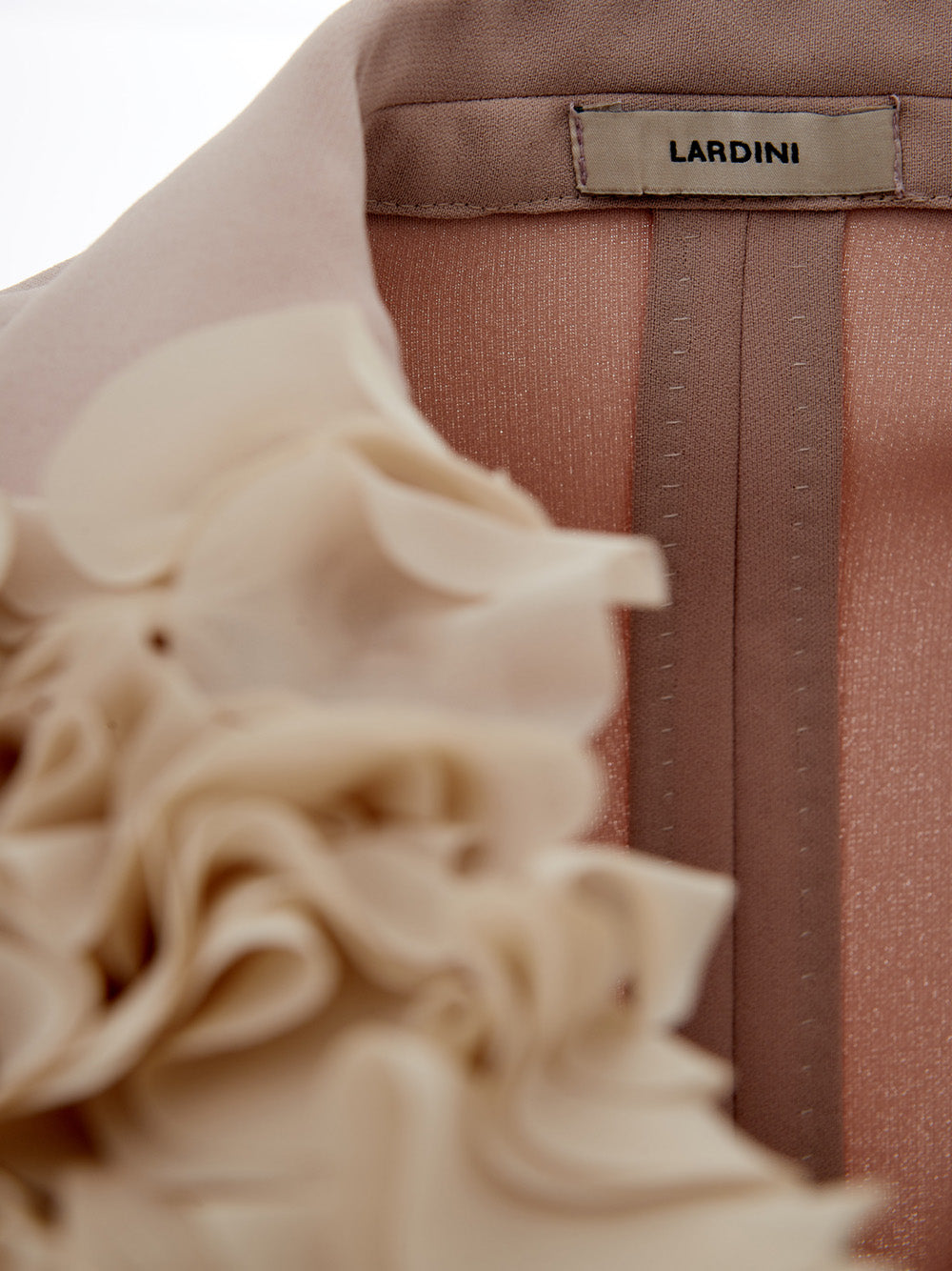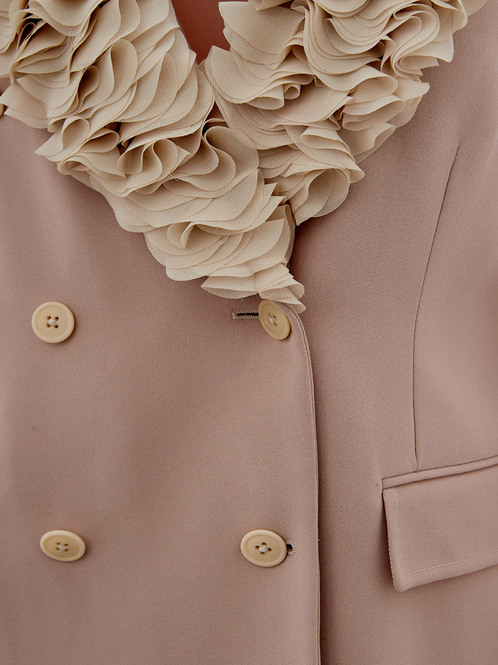 Veste à double poitrine avec rèches sur le col en poudre Lardique, deux poches avant avec patinage, boutons de contraste beige, ajustement de la composition régulière: 100% interne polyester-sku: 23FE176