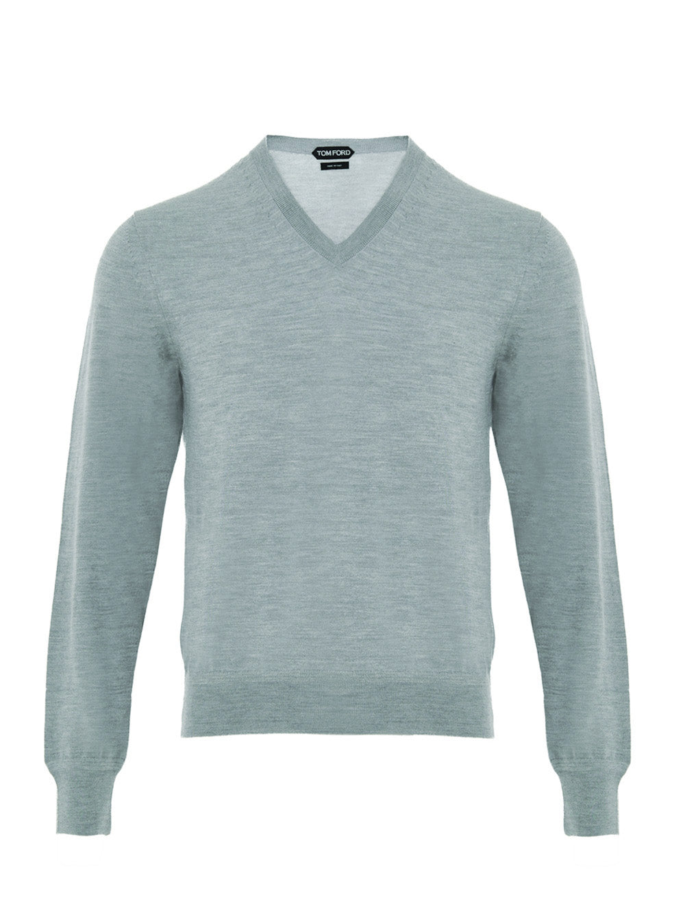 Maglia Grigia con Scollo a V in Cashmere e Seta Tom Ford