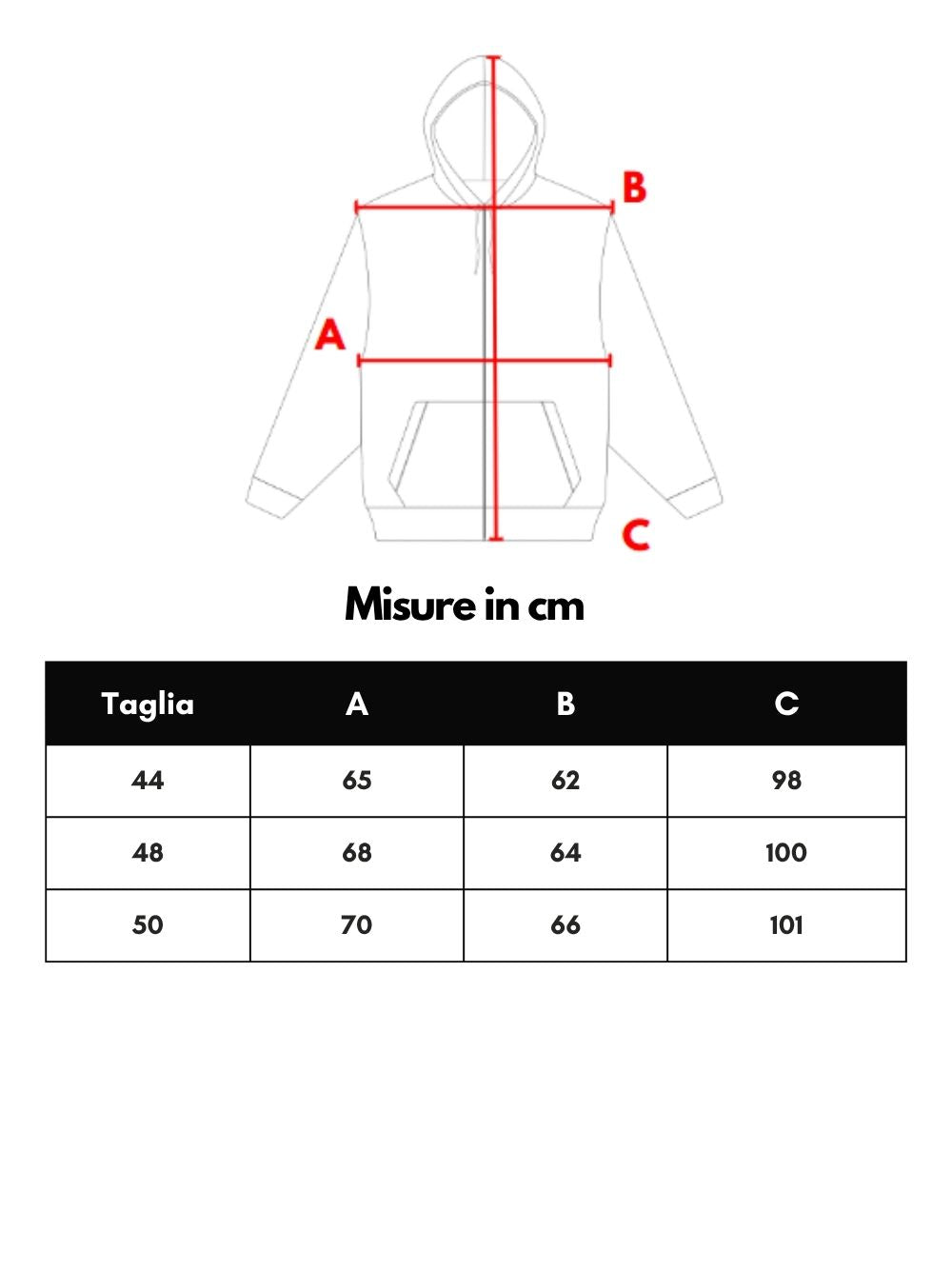 In rosso, blu e avorio, allacciatura frontale con zip bianca, due tasche laterali chiuse con zip, cappuccio regolabile con tiranti, elastico in vita regolabile, fodera interna