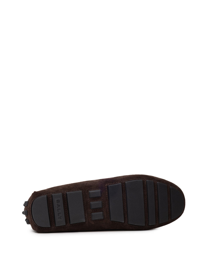 Mocassini Bally in Suede Marrone con Logo Gold